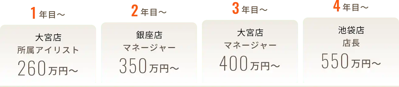 QLASHには、他サロンにはない独自の階級で、「トップアイリスト」という技術のスペシャリスト職があります。更に高いレベルの技術力を身につけられる役職です。学生時代の同期はみんな店長ですが、一番売上も指名も私が一番ですし、ここまでの数字を残せているのも自分に合ったステップに進めたからだと思っています。是非目指してほしいです。